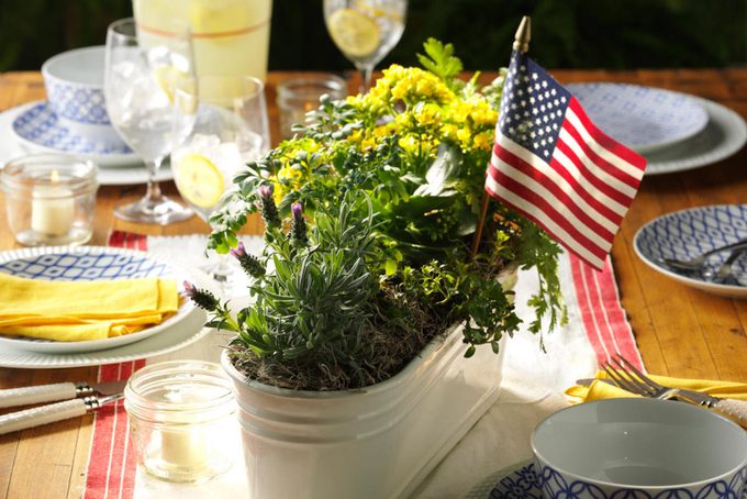 Everybody’s favorite Fourth of July thing to do is to ogle the dessert table, so why not put it front and center? Display the treats on pedestals of different heights to give your sweets spread some extra depth.