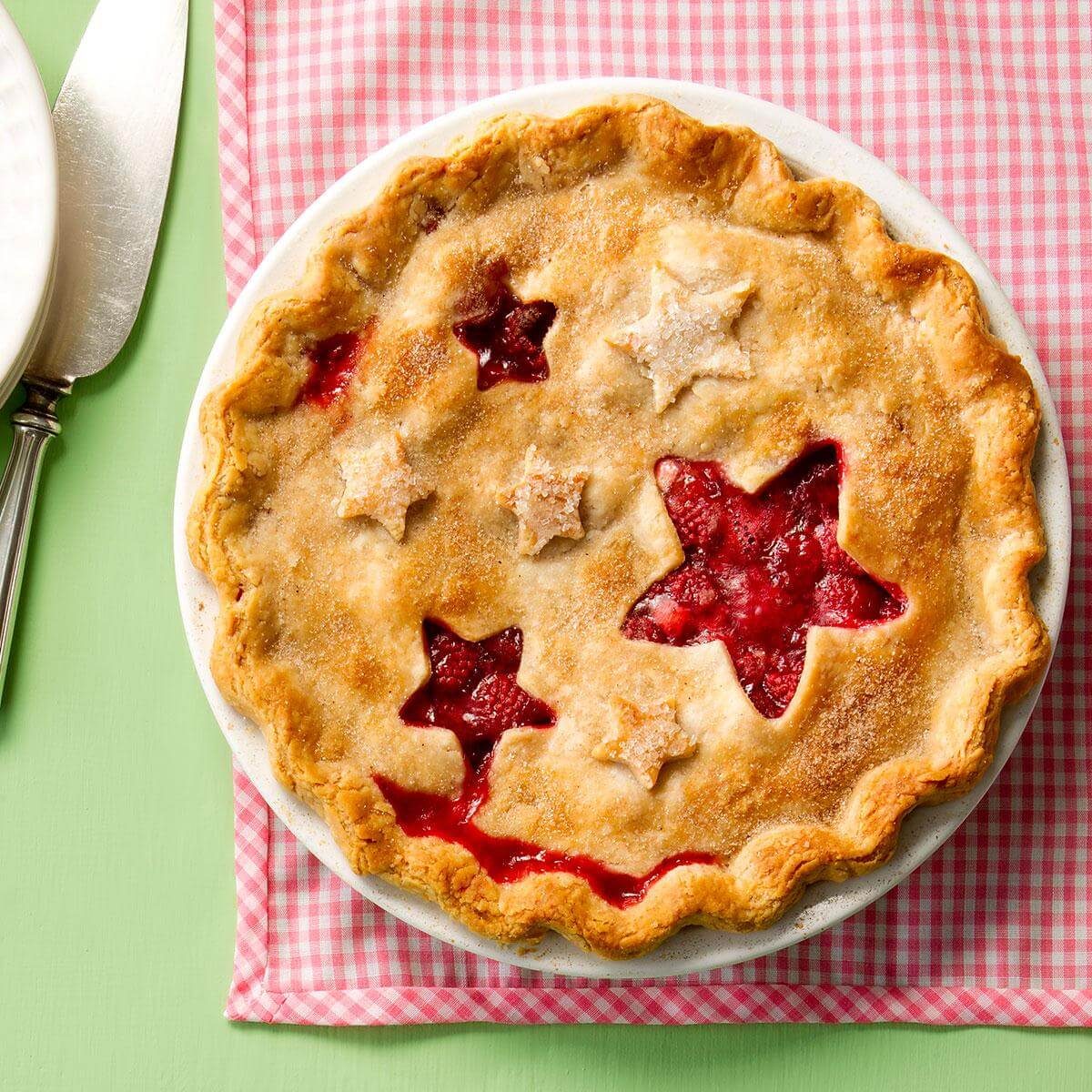 For a 4th of July potluck, think stars, stripes and fireworks—a patriotic cake and red, white and blue trifle are perfect choices. But whatever you do, start with this five-star Juicy Raspberry Pie. Here’s how to make that all-star crust: