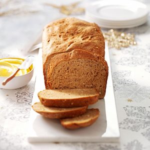 This brown bread recipe was submitted by Kellie Foglio from Salem, Wisconsin. It packs a whopping 4g of fiber per slice due to fiber-rich ingredients like wheat bran, whole wheat four and old-fashioned oats.