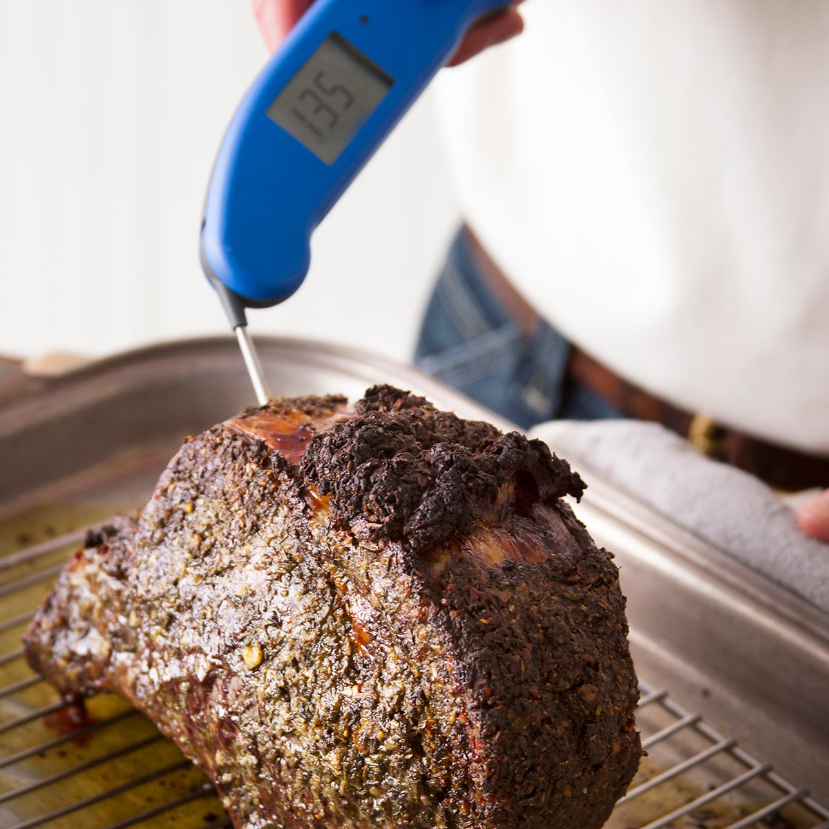 Cooking is a balancing act. You need to cook meat and other foods long enough to kill germs but not so long that they dry out and lose flavor. Finding that sweet spot isn’t always easy. But take a tip from the professional cooks in our Test Kitchen: Use a food thermometer to measure the internal temperature—our Test Kitchen staffers love this digital thermometer from Thermoworks.