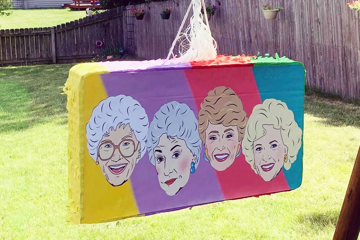 For a Golden Girls party, that means pretending like it’s Miami in the late ’80s: pastels, palm fronds and little touches that each character would appreciate (who can forget Sophia’s iconic wicker purse?).