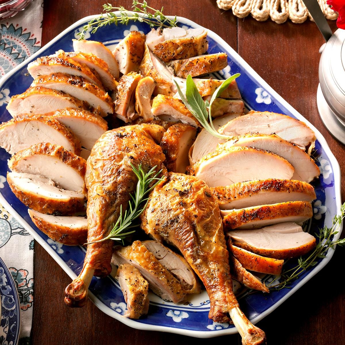 We know, changing up the turkey routine is hard, but giving the bird a flip has it’s benefits. According to Peggy Woodward, Taste of Home Senior Food Editor, making turkey upside down creates perfectly cooked turkey breast. The idea is that the breast won’t get overcooked while you wait on the thighs to cook (that’s where you take the temperature to determine if your bird is fully cooked).