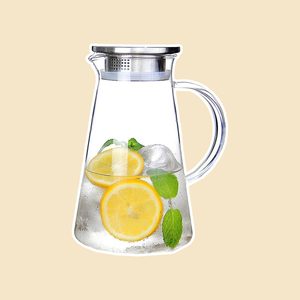 You can absolutely serve iced tea out of a glass mason jar, but it looks much more stunning when presented in a glass carafe. This 68-ounce glass pitcher has a strainer in the lid to keep any optional additions from making their way into your glass.