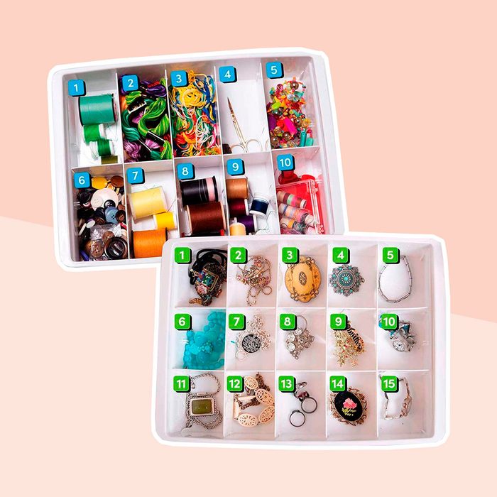 Ah, the junk drawer—famously difficult to organize and constantly in need of cleaning. Our favorite junk drawer solution is adjustable dividers. This drawer divider set comes with two boxes and customizable divider compartments that accommodate a wide variety of different-sized items. And we love that the whole thing is washable! Read up on some easy ways to banish kitchen clutter.
