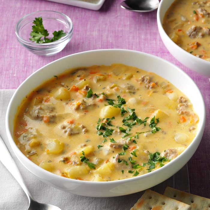 When my mother-in-law gave me her recipe for cheeseburger soup, I changed it a little to make it my own. It's the perfect comfort food to enjoy on a cold winter evening. —Christina Addison, Blanchester, Ohio