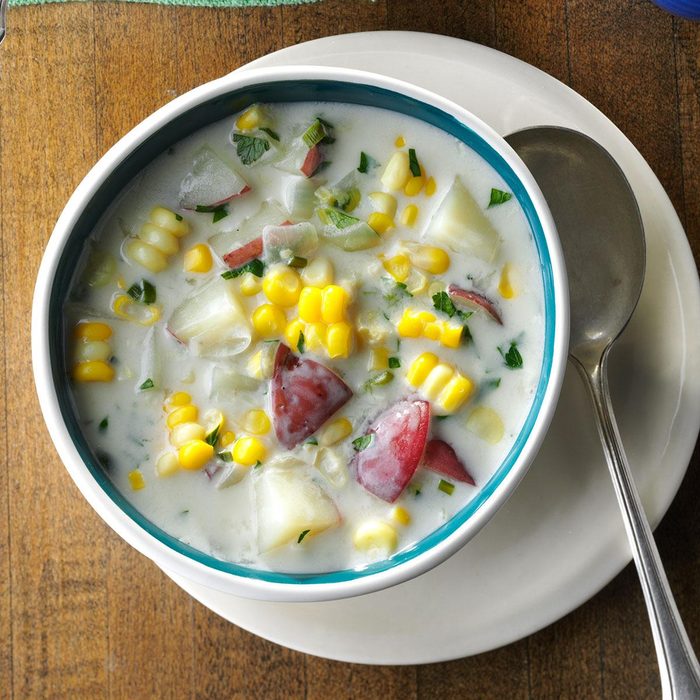 This soup was one of my favorites as a child in upstate New York, and I still love it today. For extra depth, place the spent cob in the soup, simmer, then remove. —Tracy Bivins, Knob Noster, Missouri