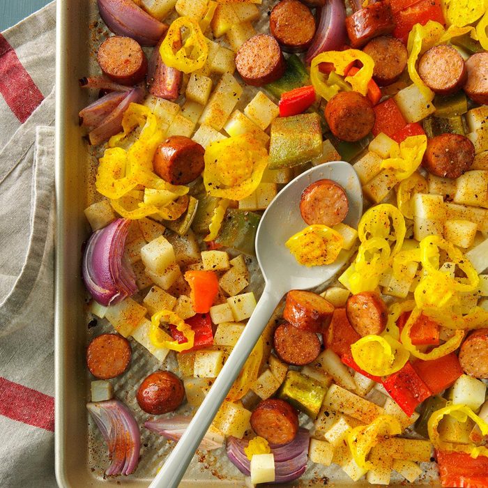 From the Recipe Creator: I love to share my cooking, and this hearty sheet-pan dinner has built a reputation for being tasty. People have actually approached me in public to ask for the recipe. —Laurie Sledge, Brandon, Mississippi