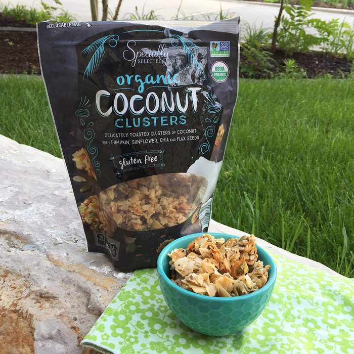 After we perked up with that tasty coconut coffee, we dove right into a bag of coconut clusters. These crispy treats included bunches of coconut with a generous helping of pepitas, sunflower seeds, chia seeds and flax seeds. The combination made for an irresistibly crunchy and sweet snack. These clusters from Aldi-exclusive brand Specially Selected were good on their own, but we thought they would be great sprinkled on yogurt or used in some of these parfait recipes.