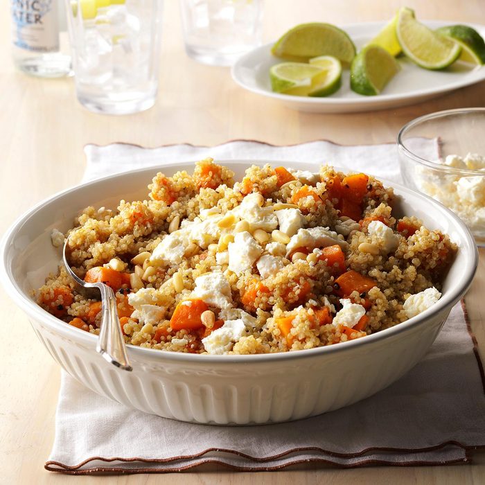 Here’s a festive dish that doubles as a colorful centerpiece. If you can’t find Sugar Baby pumpkins at the grocery store, swap in a 5- to 6-pound butternut squash, peeled and cut into 1-inch cubes.