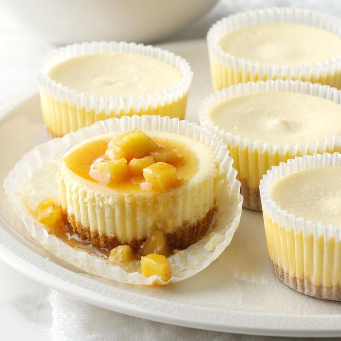 Cheesecake is the ultimate comfort food, but a big slice can be too rich. These bite-sized cheesecakes topped with apples and creamy caramel dazzle the senses. —Brandie Cranshaw, Rapid City, South Dakota