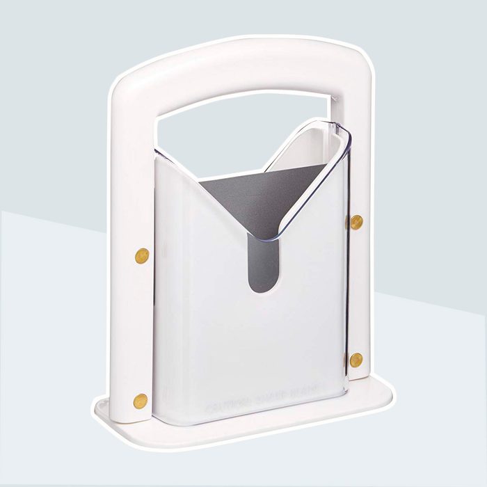 No more uneven and messy bagel halves! Use the Hoan Bagel Guillotine Slicer ($20) to safely and effortlessly slice bagels in half. Simply place the bagel in its slot and push down on the guillotine blade. It can also slice muffins, buns and rolls.