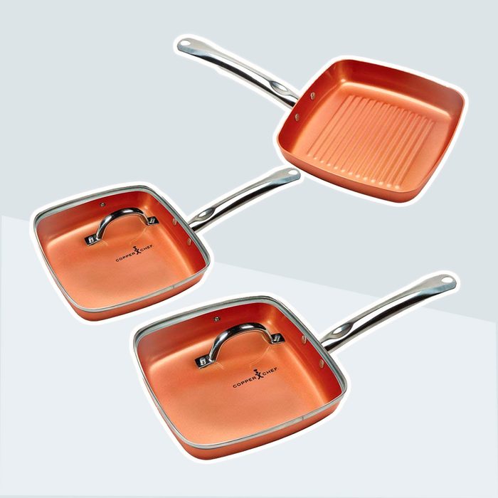 Copper pans seem to be everywhere these days. You’ve seen the commercials—sticky food sliding effortlessly off these pans, without even a drop of oil or pat of butter. The secret is their nonstick coating, thought to be the new-and-improved Teflon. With the Copper Chef Square Fry Pan 5-Piece Set ($60), you’ll get two griddle pans, one grill pan and two glass lids. The square shape lets you cook more food at once. And who doesn’t love getting dinner on the table faster?