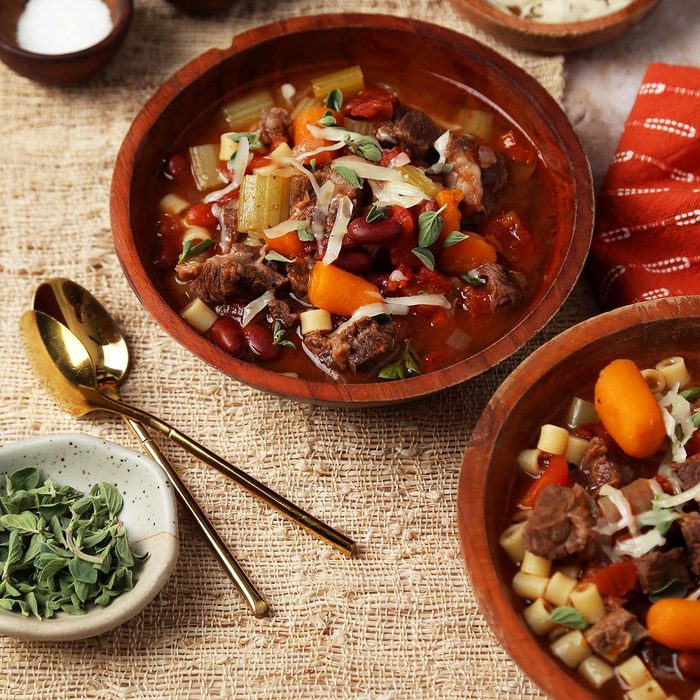 I know lots of minestrone recipes don’t contain meat, but my husband thinks a meal is only a meal if it contains some sort of meat. Consequently, this is the perfect meal. It strikes that balance of flavorful, healthful and soul-satisfying. —Juli Snaer, Enid, Oklahoma