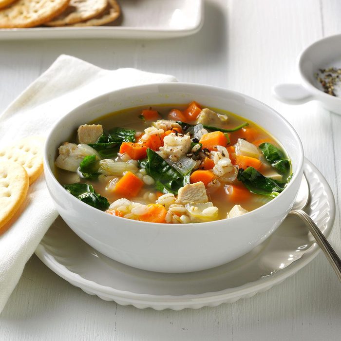 Mashed squash helps make this chowder creamy but not heavy, and it's a favorite way to get barley on the table. My kids even ask for leftovers for lunch. —Pamela Cleghorn, Campbellsburg, Indiana