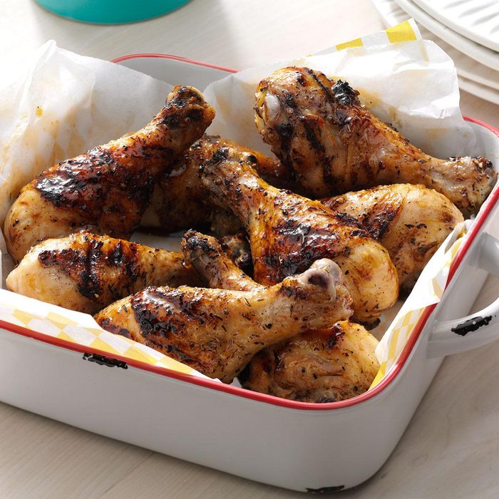 There’s one word to describe this grilled lemon chicken recipe: "Yum!" It’s so easy to prepare ahead of time, then fire up the grill when we get home from church on Sunday. Guests love the citrus flavor! —Heather Erb, Milton, Pennsylvania
