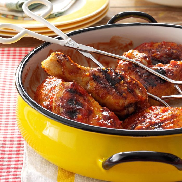 This spicy, saucy chicken is great served with basil-buttered grilled corn on the cob and fresh coleslaw. —Rita Wintrode, Corryton, Tennessee