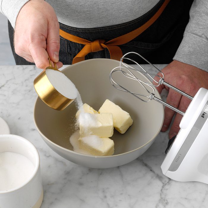 When creaming butter or margarine with sugar, it should be softened first. (You should be able to make an indentation in a stick of butter with your finger and a table knife will be able to glide through it.)