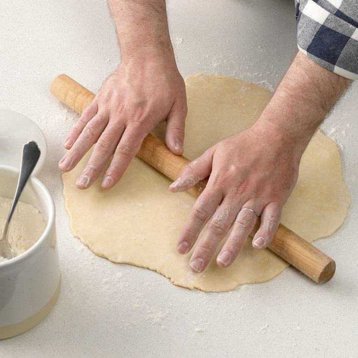 For easier handling, chill the cookie dough for 1 to 2 hours before rolling out. This is especially true if the dough was made with butter rather than shortening. Once chilled, lightly dust your work surface and rolling pin with flour to prevent sticking.