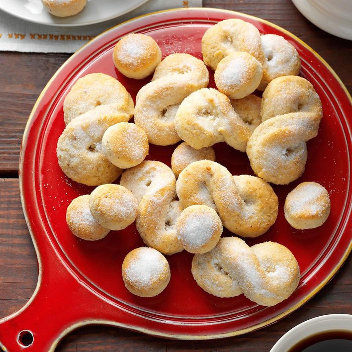 Biscuit mix hurries along these nutmeg-spiced buttons and bowknots. They’re a fun breakfast treat to enjoy on a snowy morning. Serve with hot chocolate or coffee for dunking. —Marcie Holladay, Irving, Texas