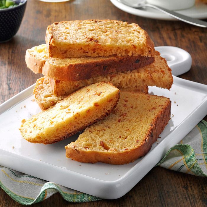 My family eats this flavorful bread as fast as I can make it. Sometimes I add different herbs, red onion or crumbled bacon. It's one of my best recipes!