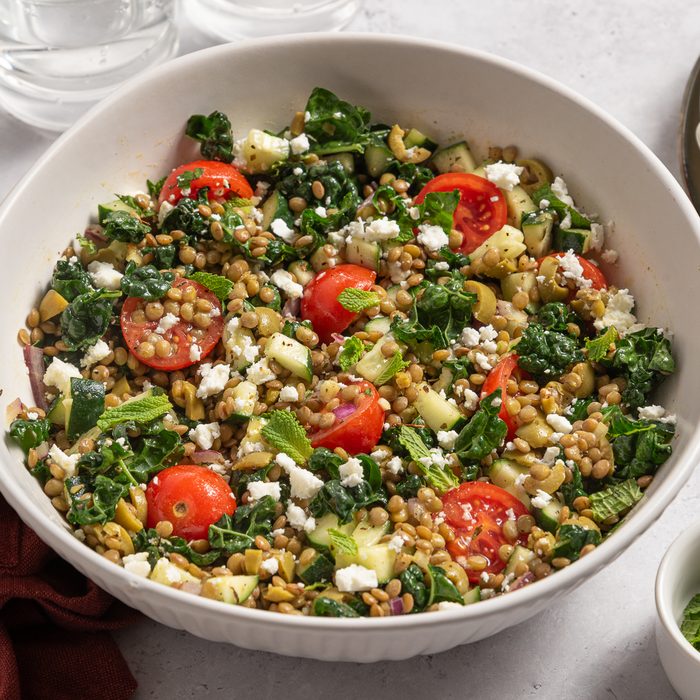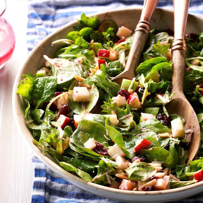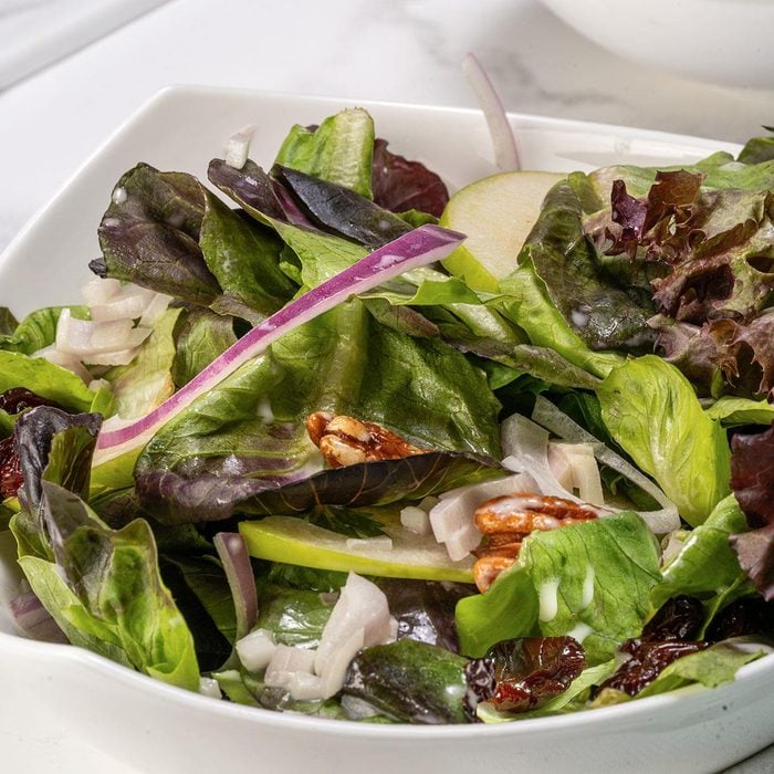 When it comes to winter salads, you’ve got plenty of protein options, from cooked, sliced flank or skirt steak to cubed seasoned chicken and turkey. Grilled shrimp is a great quick-cooking seafood choice, and flaked canned salmon or tuna is a fast, no-cook salad upgrade. There are plenty of ways to include pork in a hearty salad, from diced, crispy pancetta to leftover shredded pork shoulder. For a vegetarian protein, crispy baked tofu, hard-boiled eggs or chickpeas are easy and versatile additions.