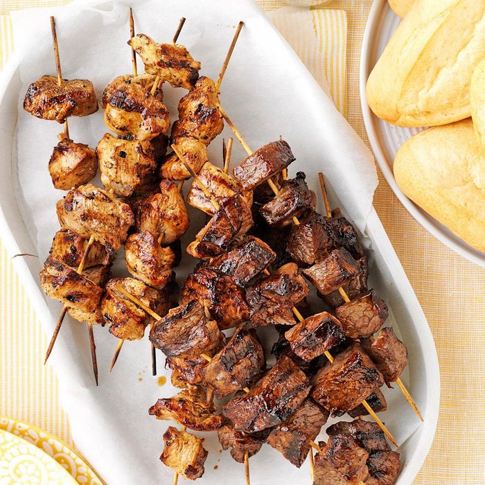 These steak kabobs not only satisfy my love of outdoor cooking, they feature a mouthwatering marinade, too. It's terrific with chicken and pork, but I prefer it with beef because it tenderizes remarkably well. —Christi Ross, Guthrie, Texas