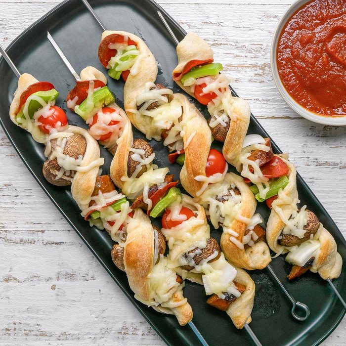 My daughter and her friends had fun turning sausage, pepperoni, veggies and pizza dough into these cute kabobs. —Charlene Woods, Norfolk, Virginia