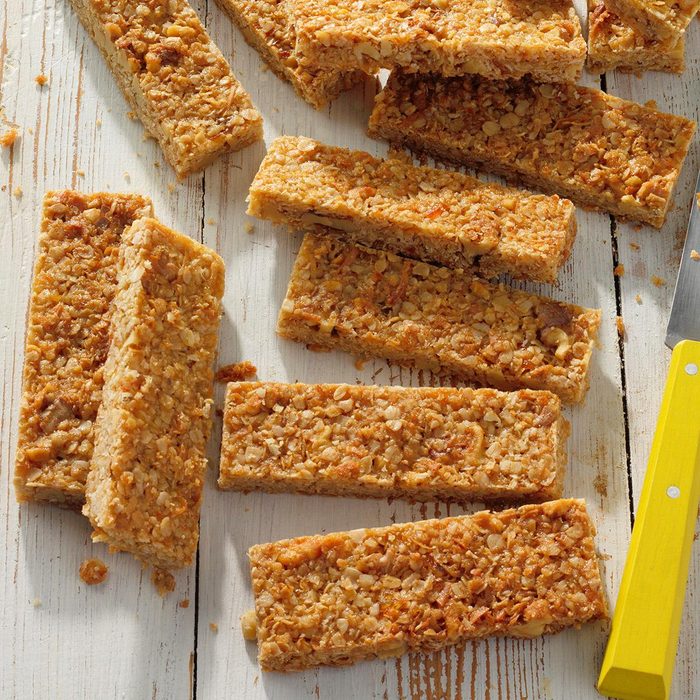 This soft, chewy oatmeal breakfast bar recipe has a hint of orange marmalade, so they’re a fun change of pace from typical granola bars. They’re so easy to put together and so delicious, you’ll find yourself making them all the time. —Barbara Nowakowski, North Tonawanda, New York