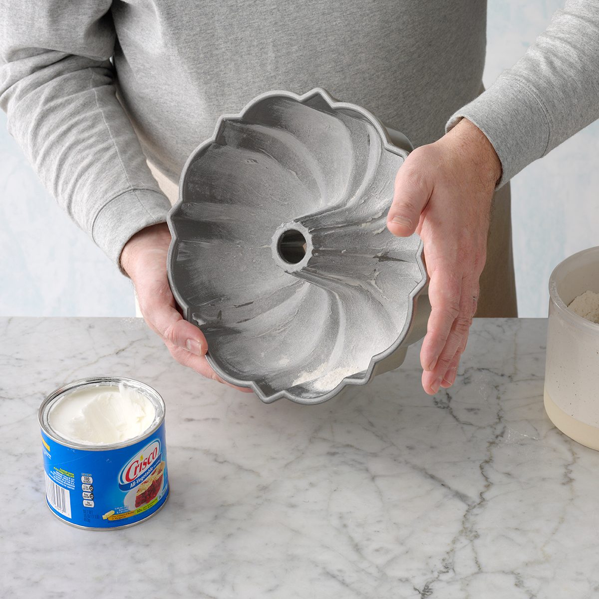 While greasing your pan with shortening and dusting with flour is our Test Kitchen’s preferred method, you can also use cooking spray to grease your pan. However, not any old spray will do. Catherine says that if you’re going to opt for the spray, make sure it has flour: “Something like Baker’s Joy or Pam with flour works well.”