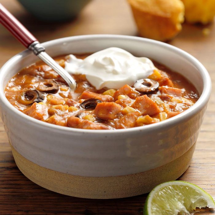 "Island vacation in a bowl” might be the best way to describe this hearty soup. A splash of lime juice and a hint of jerk seasoning add tropical taste. —Mary Lou Timpson, Colorado City, Arizona
