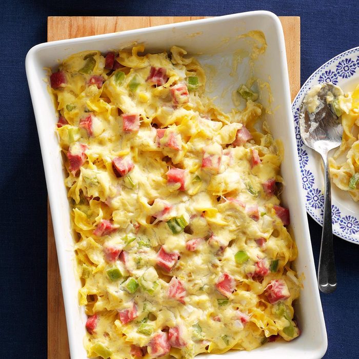 When I prepare this noodle casserole for church gatherings, it’s always a hit. It can easily be doubled or tripled for a crowd. —Doris Barb, El Dorado, Kansas