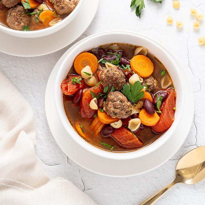 From the Recipe Creator: This meatball soup recipe is a hearty meal. It’s great for chilly days. —Sue Miller, Walworth, Wisconsin