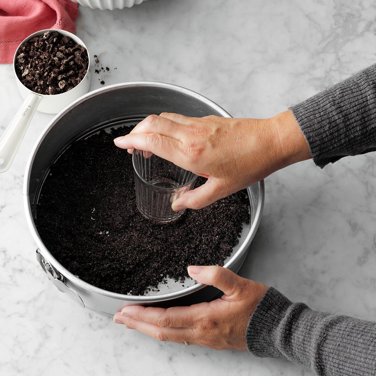 Finely grind cookies, crackers or nuts in your food processor to make a crust—there are so many options. Feeling creative? Experiment with the flavor by adding herbs or citrus peel.