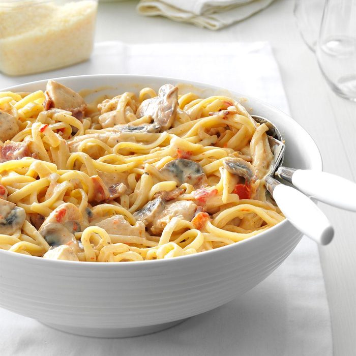 When I want a lighter dinner, I use lean turkey bacon in this recipe. It gives the pasta that richness you want without all the extra fat. —Courtney Harris, Denton, Texas