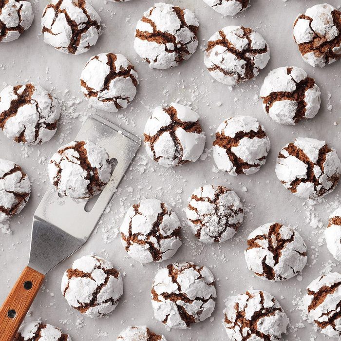 From the Recipe Creator: Here's a snack for serious chocolate lovers. These enticing cookies are crisp on the outside and soft on the inside, somewhat bittersweet and very chocolaty. I usually make them to share at get-togethers. Otherwise, I'd eat them all myself! I'm always asked for the recipe. —Delaine Fortenberry, McComb, Mississippi
