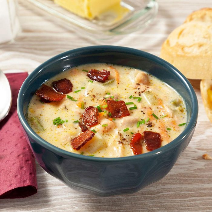 Traditionally, chowder often included salt pork, but it’s not mandatory, and there are many delicious vegetarian chowder recipes. We have recipes for chowders with broccoli and cheese, corn, beans and even quinoa. Additionally, some of our other vegetable-forward chowders can easily be made vegetarian by using vegetable broth instead of chicken broth and omitting bacon.
