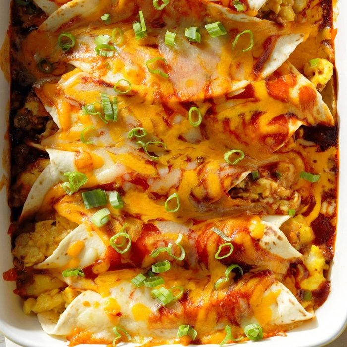 Warm, saucy and cheesy is always a win on a cold winter’s morning. Even better, you can make these egg-and-sausage enchiladas the night before, then cover the baking dish and store them in the refrigerator overnight. The next morning, just pop them in the oven. Check out more make-ahead breakfast recipes if you’re serving a bigger crowd.