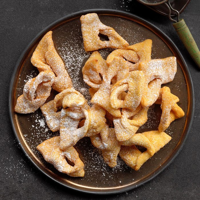 I’m obsessed with this Scandinavian dessert. It’s more like a fritter than a cookie, but still just as sweet. You’ll dip a special rosette iron into the batter, then plunge it into hot oil to deep-fry the cookies. A gorgeous glaze finishes them, making the pattern more pronounced.