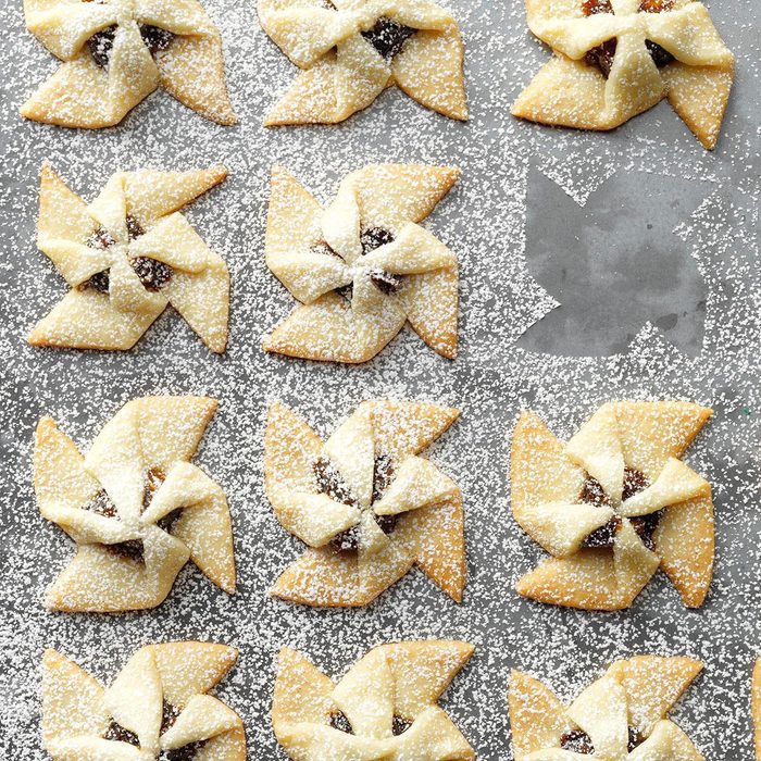 These Finnish cookies are called joulutorttu, meaning “Christmas star” or “Christmas pastry.” The cookies’ edges bake up crispy, but the dough in the center stays soft as it holds and covers the plum and date jam.