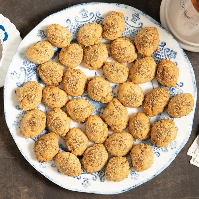 Yes, these little deep-fried balls of dough are Italian cookies! Once the dough balls are fried, they’re tossed in a honey syrup and arranged on a plate. Each one is crispy on the outside, soft on the inside and perfectly sweet from the honey glaze. Don’t forget to top them with Christmas-colored nonpareils—they need a pop of color!