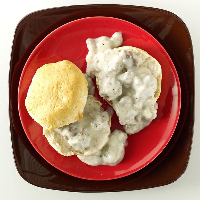A Southern specialty, this hearty pork sausage gravy uses sausage drippings, milk and flour to make a thick creamy gravy traditionally served over biscuits. —Taste of Home Test Kitchen