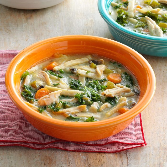 Chicken noodle soup brings back memories of childhood. This revamped version with a healthy twist is a favorite at my house, especially after we've been working outside on a cool day. It takes the chill off.—Cynthia LaFourcade, Salmon, Idaho