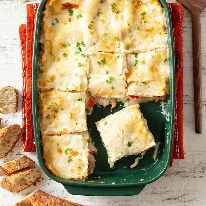 This quick, easy recipe is truly delicious. The succulent, melt-in-your-mouth seafood flavors and textures make for elegant comfort food. To make ahead, just assemble, cover and refrigerate, then bake when ready. —Jan Bartley, Evergreen, North Carolina