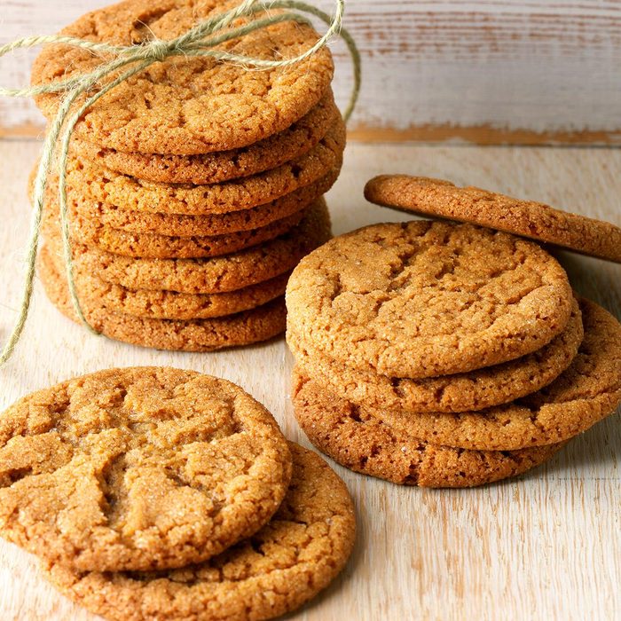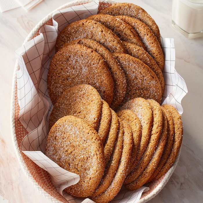 A classic New England cookie, gingersnaps are now universal. My grandma kept two cookie jars in her pantry. One always had these crisp and chewy gingersnaps in it. They’re still my favorite cookie. My daughter, Becky, won a blue ribbon for this recipe at a 4-H fair. —Deb Handy, Pomona, Kansas