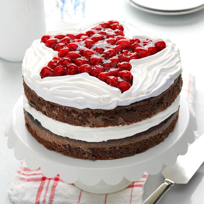 I make a black forest cake the easy way: Dump everything into a dish and let the magic happen. Give it a cherry topping by reserving two tablespoons of juice from the canned cherries and stir into whipped cream. —Meghan McDermott, Springfield, Missouri