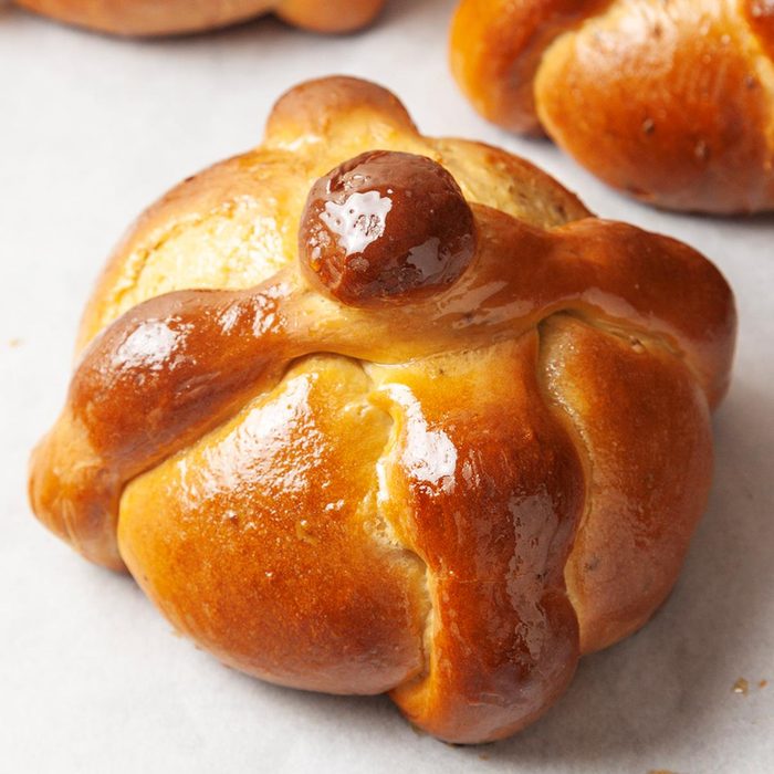 From the Recipe Creator: Every year, I make a batch of this Day of the Dead bread to place on my grandmother’s altar. The smell of dough rising in the kitchen is an unforgettable aroma that reminds me of those brisk evenings at my grandmother’s house, the night before we visited the cemetery on Dia de Los Muertos.