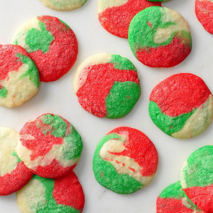 No one will believe that these rich and buttery cookies are light, but they are! With their colorful swirls, each one of these minty, sugary bites has its own look. —Lois Hill, Thomasville, North Carolina