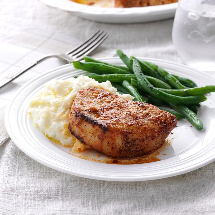 My son James created these zesty chops spiced with paprika and cayenne. He keeps the spice rub in a jar to use with chops or chicken. —Molly Seidel, Edgewood, New Mexico