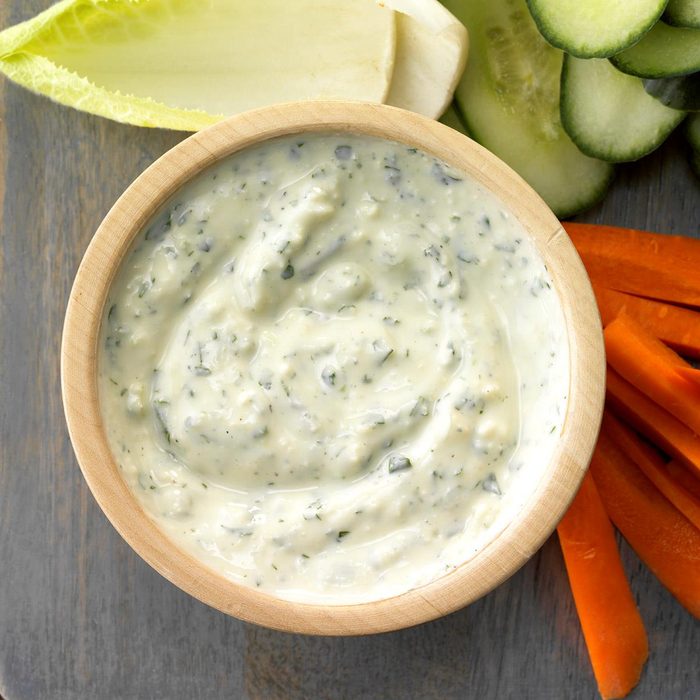 From the Recipe Creator: We like to eat raw vegetables a few times a week as a side dish for a meal, and this is a healthier alternative to ranch dressing for a veggie dip. —Kathleen Tribble, Buellton, California