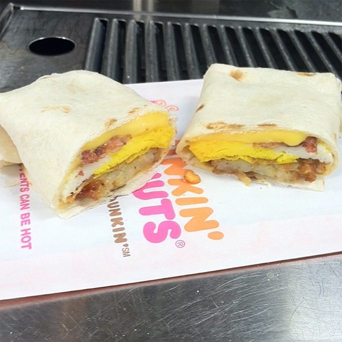 Dunkin’ Donuts has breakfast, but a Breakfast Burrito hasn’t been on the menu—until now. It’s a combination of other Dunkin’ breakfast menu items, including sausage, bacon, cheese and hash browns, all wrapped up in a tortilla.